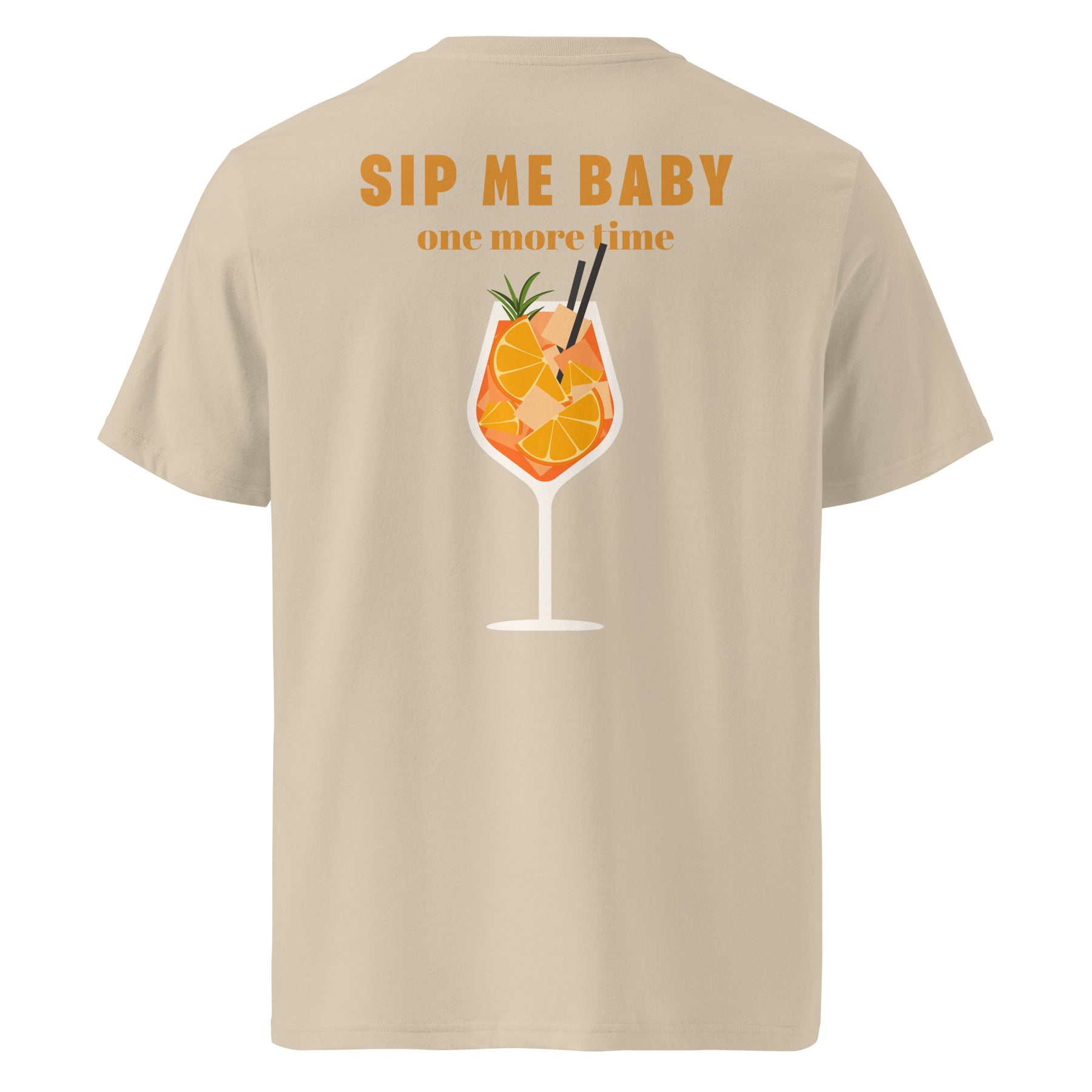 Sip Me Baby organic t-shirt inspired by playful nights, flirtatious moments, and one more drink.