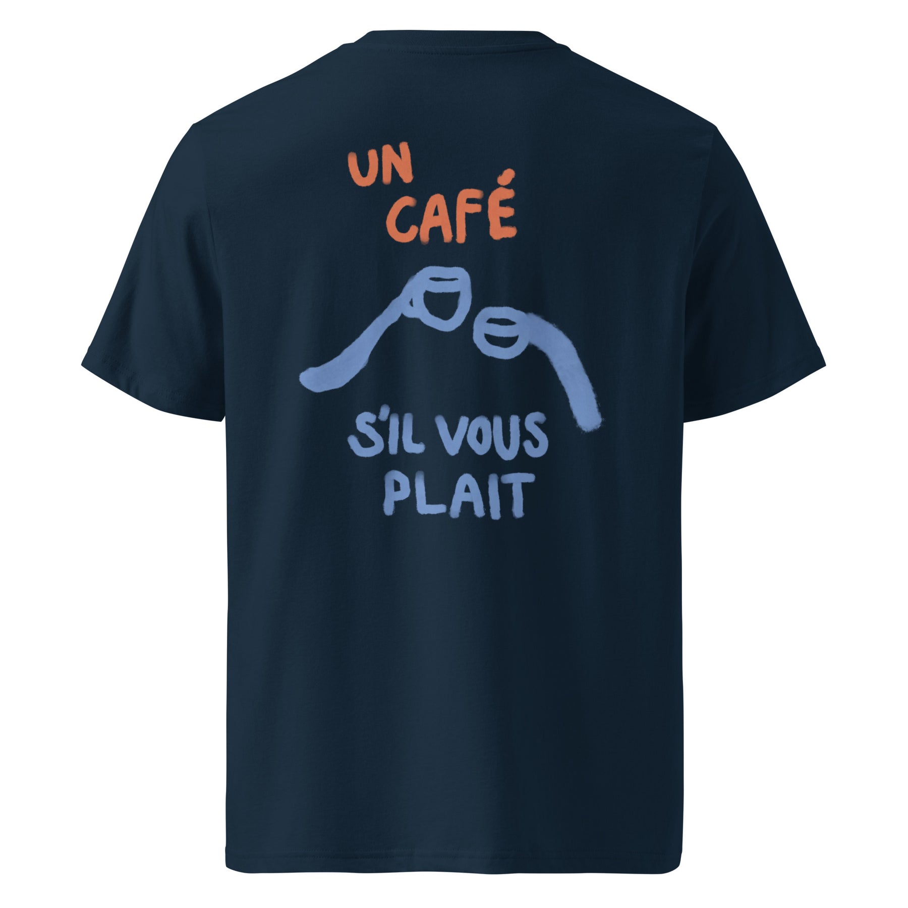 Un Café S’il Vous Plaît organic t-shirt inspired by Parisian mornings, café culture, and effortless French style.